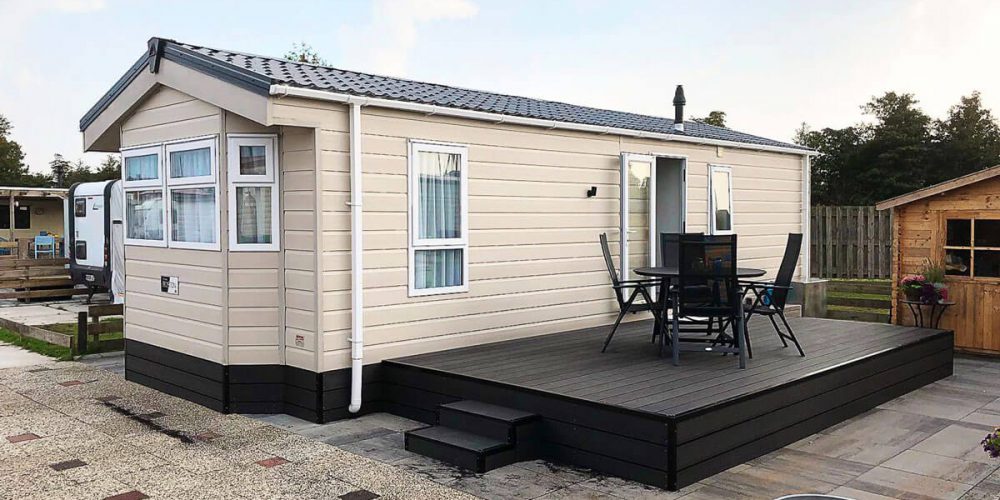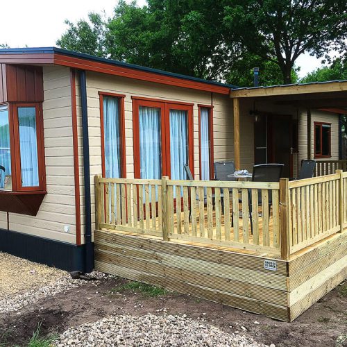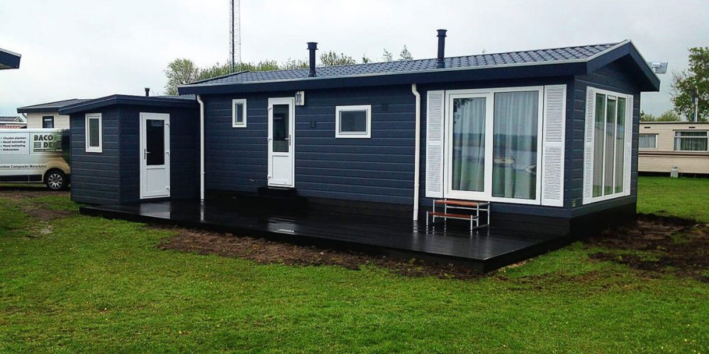 Voor het dichtmaken van de onderkant van uw chalet zijn meerdere mogelijkheden van toepassing. Zoals het afdichten d.m.v. geïsoleerde damwandplaten – erg handig als u bijvoorbeeld ook ’s winters van uw chalet gebruik maakt. Of het afdichten met Bacodeck terrasplanken. Van dit zelfde bamboe composiet materiaal kunnen wij ook aansluitend een terras maken.